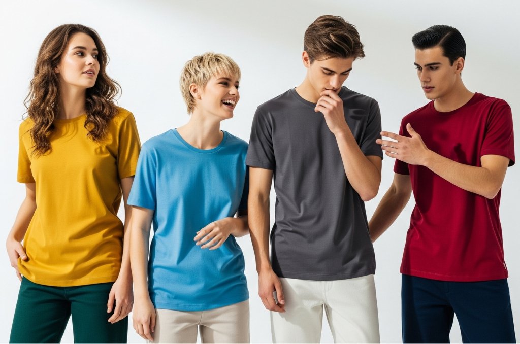 Melayani produksi kaos cotton combed berbagai gramasi dengan hasil jahitan rapi dan nyaman dipakai.