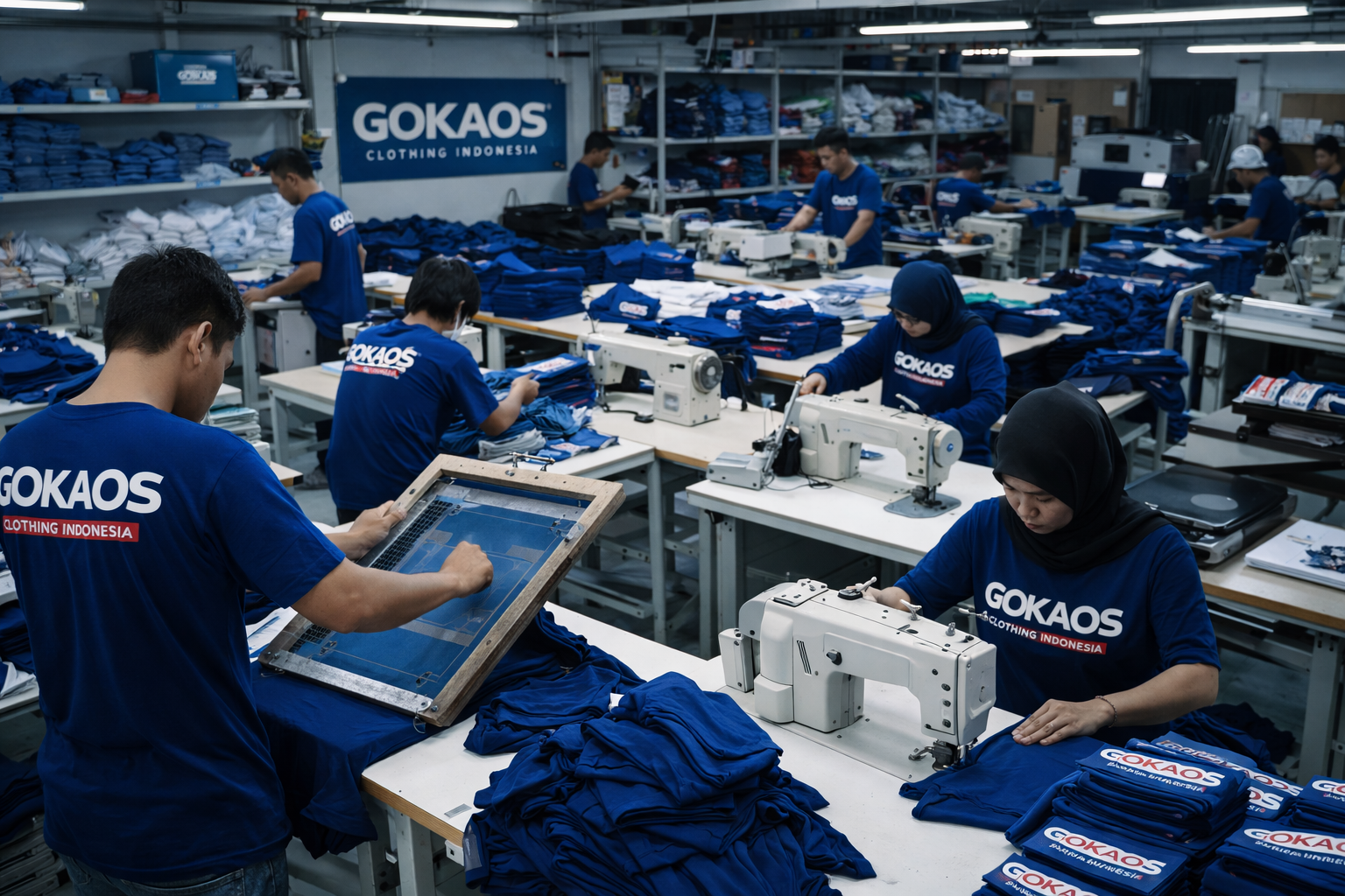 Workshop dan warehouse GOKAOS Clothing Indonesia beroperasi dengan standar operasional yang terukur untuk memastikan setiap proses produksi berjalan efisien, terkendali, dan memenuhi kualitas yang telah ditetapkan.